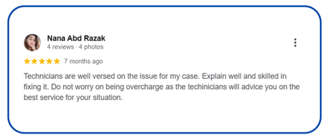 Tempah Dalam 5 Minit - Servis Pada Hari Yang Sama - 10+ Tahun Pengalaman - 5.0 Stars Review di Google Profile - Tiada Caj Tersembunyi